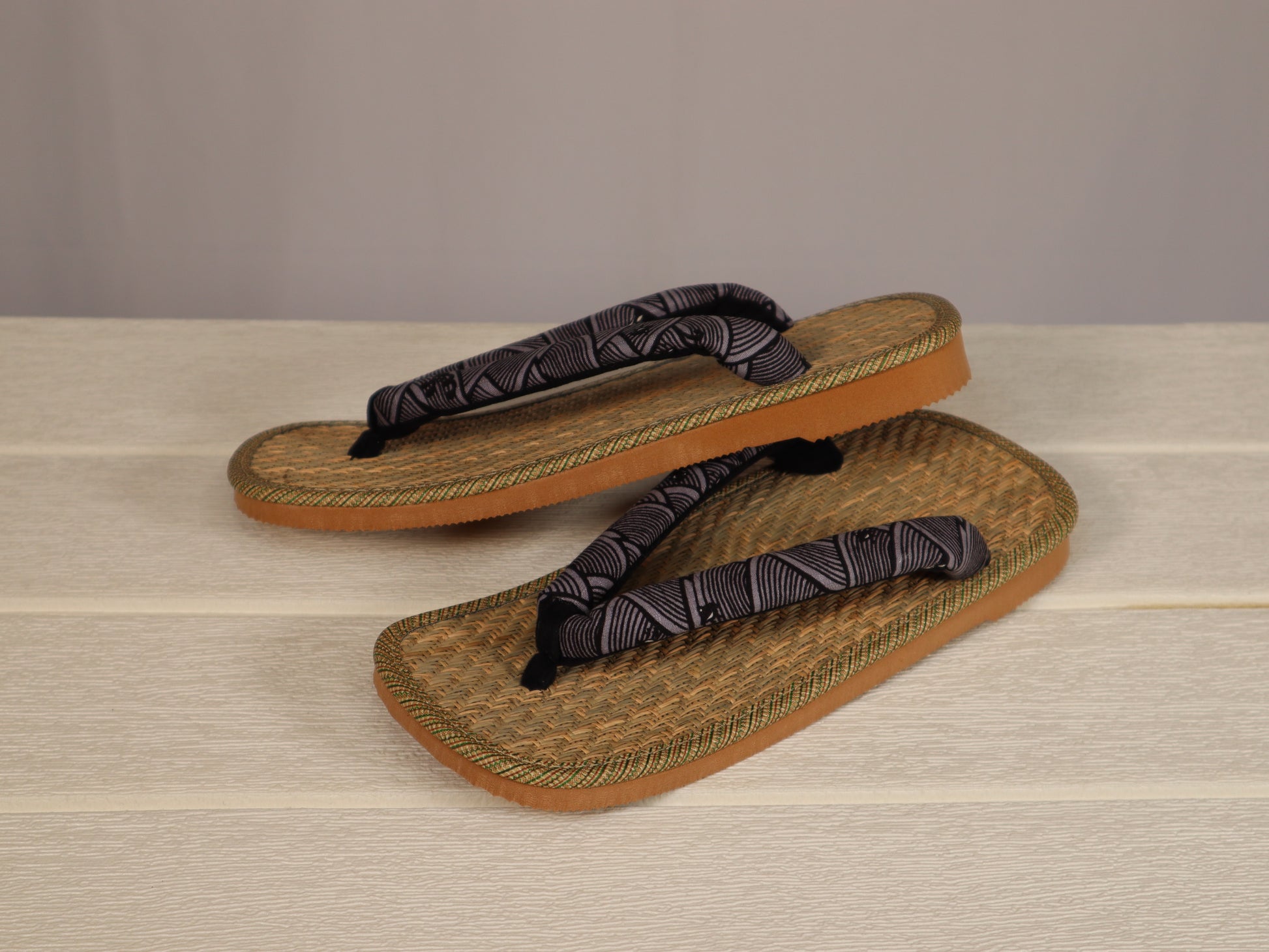 凹凸がありさらりとした履き心地が人気のマライ草天板に、和柄を合わせた草履です。はらっぱをお散歩するかのような爽やかな履き心地。