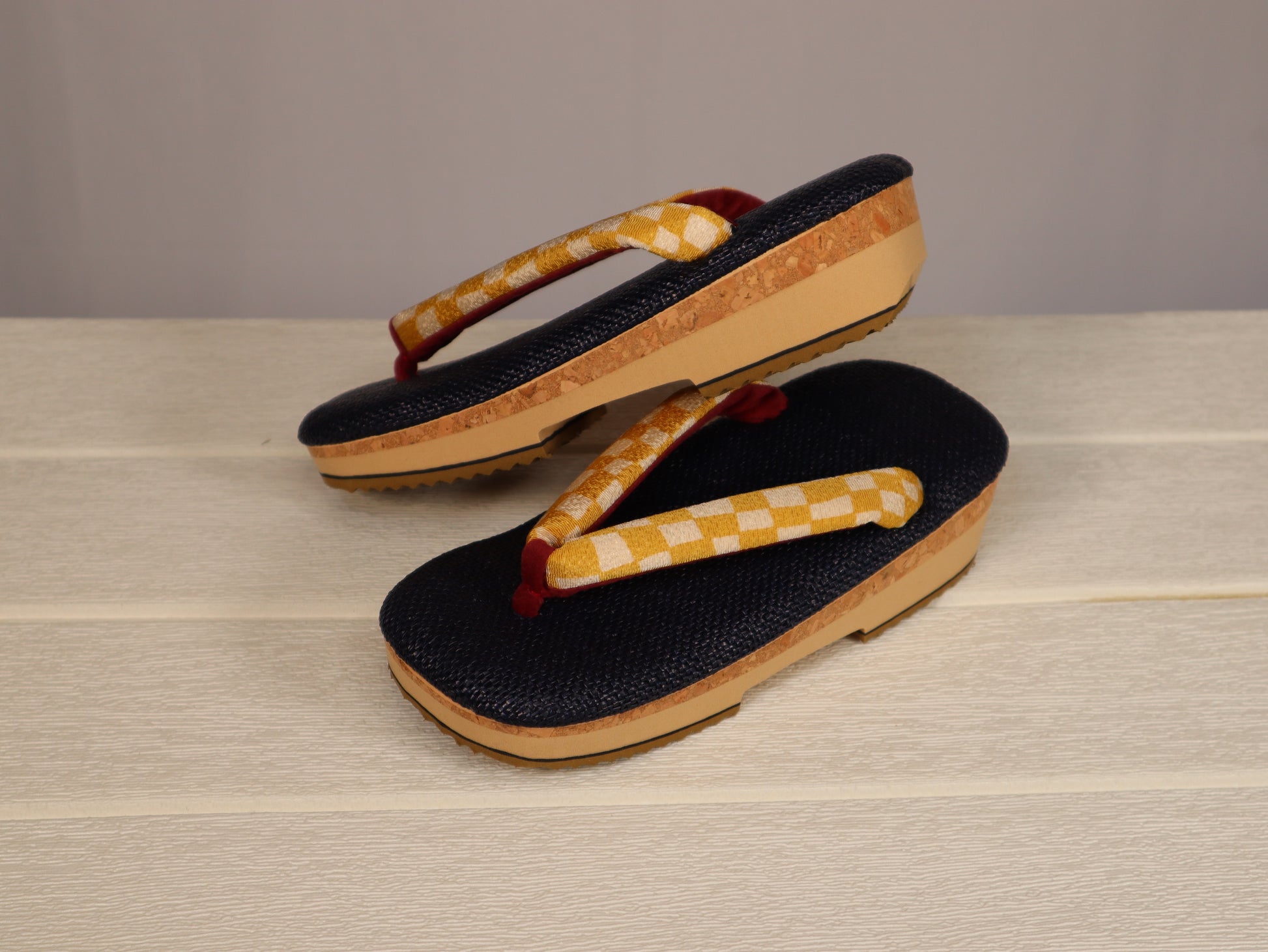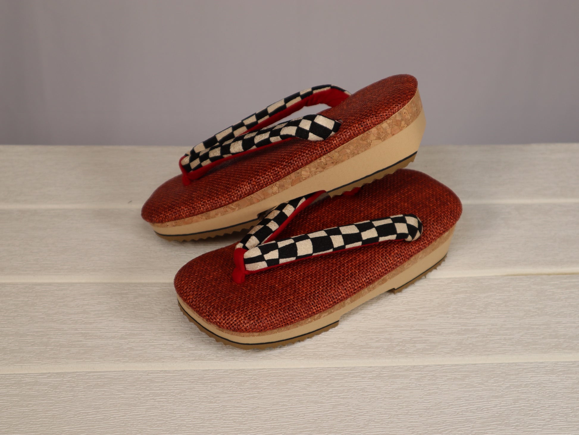 天板は合成繊維のパナマ織りの技法で織られたものを用い、擦れに強く耐久性に優れ涼しげなインソールをカラフルに仕上げた草履。